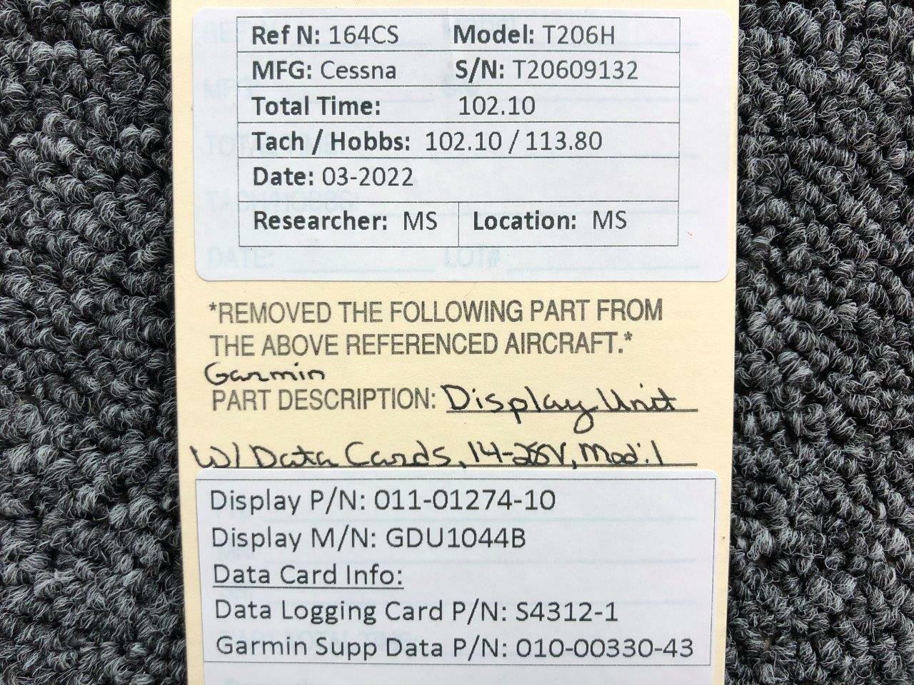 Garmin Avionics GDU-1044B Display Unit With Cards